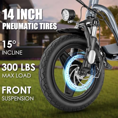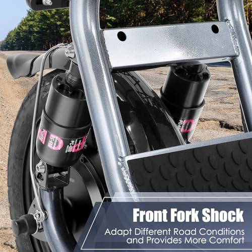 Enhance your ride experience with advanced multiple suspensions (front, rear, and seat) that reduce shock and increase stability. The 14″ large pneumatic tires offer excellent grip, high elasticity, and wear resistance. A large, soft seat and extra-wide non-slip deck further ensure a smooth and comfortable ride.