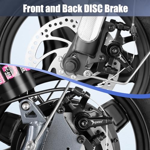 Enjoy the convenience of a foldable design, making it easy to store in your car trunk or other tight spaces. Safety features include responsive dual drum braking systems, a bell, headlight, and red tail-light. Durable one-piece wheel hubs and a high-strength steel frame with a 300lbs weight capacity ensure long-lasting performance and safety.