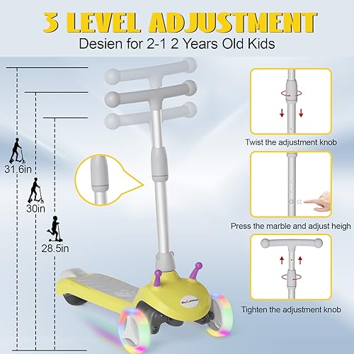 Perfect for ages 2 to 8, our scooter offers 3 adjustable handlebar heights: 28.5″ – 31.6″. Accommodate a max load of 50 kg/110 lbs and enjoy a smooth, uninterrupted ride.