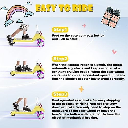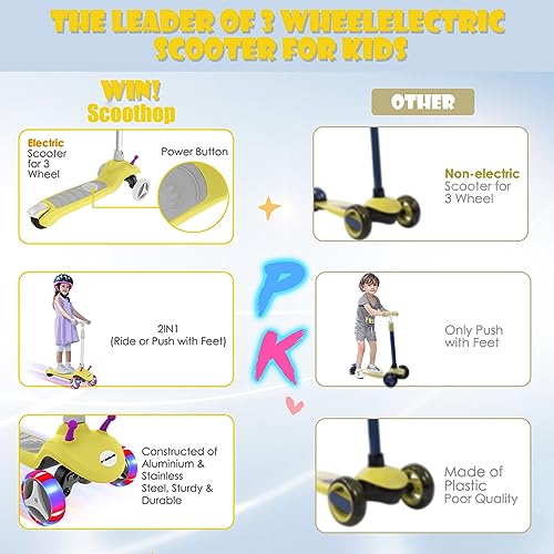 Experience the thrill of our electric kids’ scooters that automatically light up the wheels when your kids start riding. The Colorful LED lights not only add a fun element but also provide safety at night. No battery required!