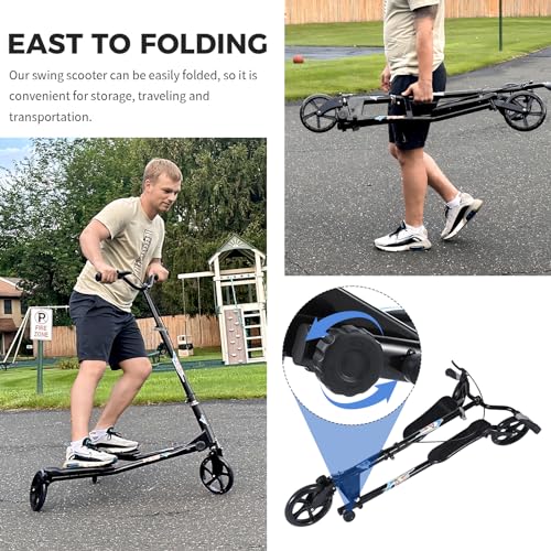 3-Wheel Foldable Scooter Swing Tri Slider Kick Wiggle Scooter for All Ages 8+