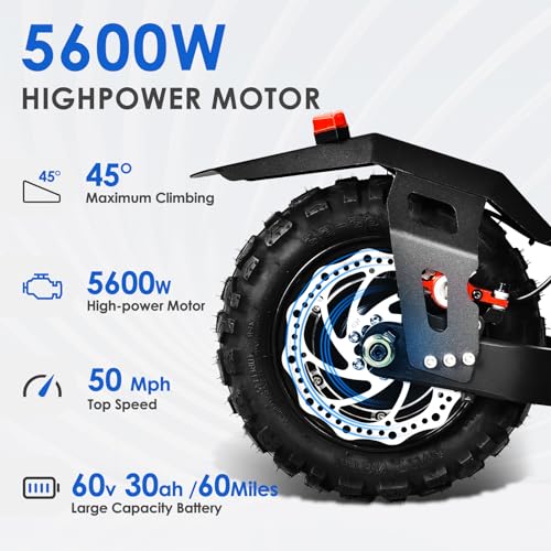 5600W Dual Motor Adult Electric Scooter, 60 Mile Range, 50MPH Speed, 11 Inch Off-Road Tires
