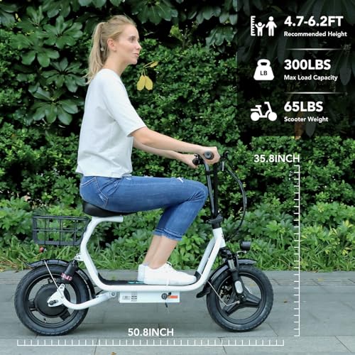 With a 500W motor (peak 819W) and a 48V lithium battery, the Caroma electric scooter can reach up to 20 mph and climb 15% hill grades with ease. The range is up to 25 miles, perfect for short commutes to school or office.