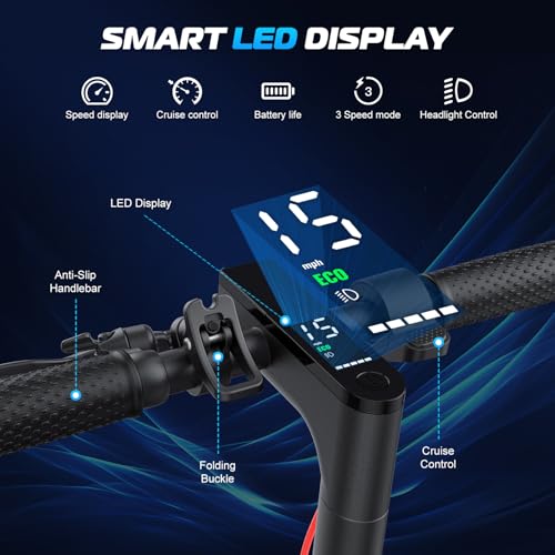 ✔ 3 Speed Modes: This electric scooter for adults features 3 adjustable speed modes to meet various travel needs, from leisurely rides to fast commutes. Suitable for everyone, from beginners to speed enthusiasts, you can switch between the 3-speed modes by double-clicking the power button.