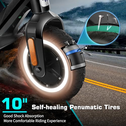 – Comfortable Ride: 10-inch self-healing inflatable tires provide a comfortable and smooth ride.