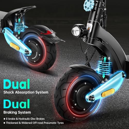Experience a smooth ride with 10-inch pneumatic tires that provide excellent shock absorption. The one-piece magnesium alloy frame enhances both stability and durability, ensuring a comfortable journey on any terrain.