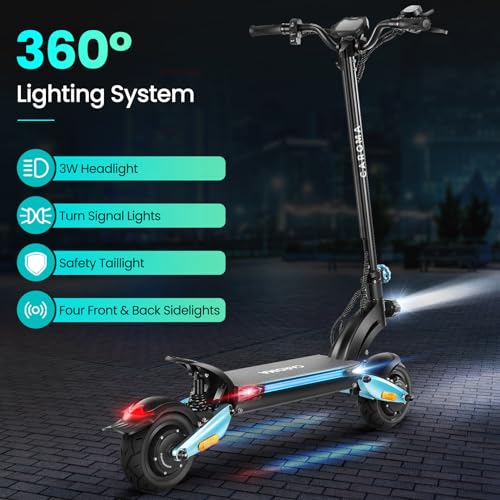 This electric scooter for adults includes a quick folding system, allowing it to fold in just one second. Its compact size of 47.1″ x 22.2″ x 22.8″ makes it easy to store in a trunk or at home, perfect for travel and outings. Its versatile design suits any lifestyle.