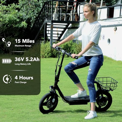 Convenient and space-saving, this electric scooter folds for compact storage in car trunks or tight spaces. A detachable scooter seat is included for added convenience.