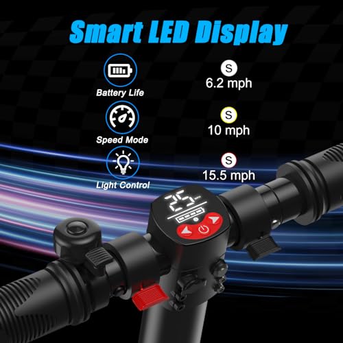 Enjoy clear visibility with the LED display showing current speed, mode, battery life, and headlight status. With 3 adjustable speed modes (6MPH, 10MPH, 15.5MPH) and support for up to 220 lbs, it’s versatile for kids, teens, and adults. It’s ideal for both play and travel.