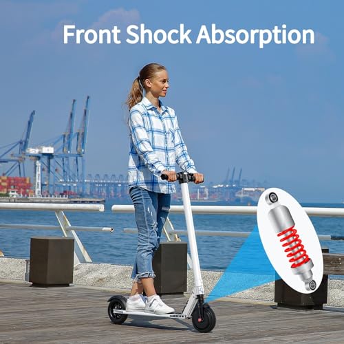 Safety is crucial with this electric scooter. It has electronic and foot brakes, a non-zero start function, and 6.5-inch puncture-resistant, maintenance-free solid tires. This offers excellent shock absorption and eliminates mid-ride concerns.