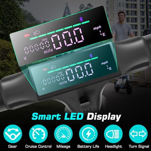 Smart APP Control: The CAROMA electric scooter for adults comes with a smart display screen and a smartphone app. Monitor and control your ride easily. Intelligent Bluetooth control ensures a seamless, connected experience. Switch to zero-start mode via the app or by quickly pressing the headlight button three times.