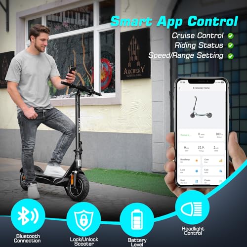 Smart APP Control: This fast electric scooter for adults comes with a smart display screen and a smartphone app for easy monitoring and control. It also features intelligent Bluetooth control, providing a seamless, connected experience. You can switch to zero-start mode via the app or by quickly pressing the headlight button three times.