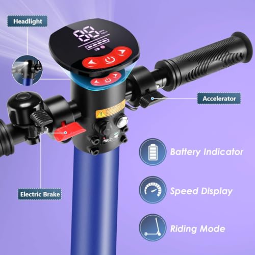 Enjoy clear LED displays showing current speed, battery life, and headlight status. Choose from 3 adjustable speed modes—6MPH, 10MPH, and 15.5MPH—to match your needs. With a weight limit of 220 lbs, it’s versatile for kids, teens, and adults.