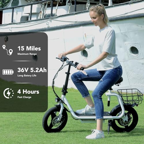 Equipped with 14-inch rubber pneumatic tires, the Caroma P6 scooter ensures a smooth and comfortable ride by effectively absorbing bumps. The 9.5-inch wide deck provides ample space, allowing you to bring your pet along during your travels. Additionally, the adjustable saddle lets you customize the height and fit according to your body dimensions.