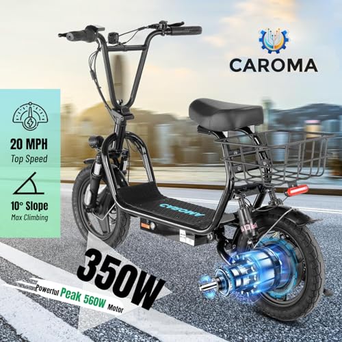For your night rides, the Caroma electric scooter features bright front and rear lights, as well as brake tail lights, ensuring your safety. An electrical safety system automatically cuts off power during braking for added security. The super soft and wide shock-absorbing seat and removable basket make every ride comfortable and safe.