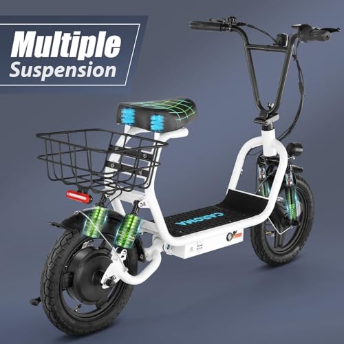 – Battery: 36V lithium battery with regenerative braking for up to 15 miles range.