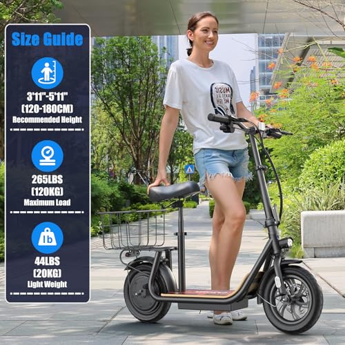 The Caroma electric scooter features a soft, adjustable foam seat and an extra-wide non-slip deck for maximum comfort. The detachable basket makes storage convenient, and the foldable handlebar design lets you easily fit the scooter in the trunk, perfect for travel or daily use.