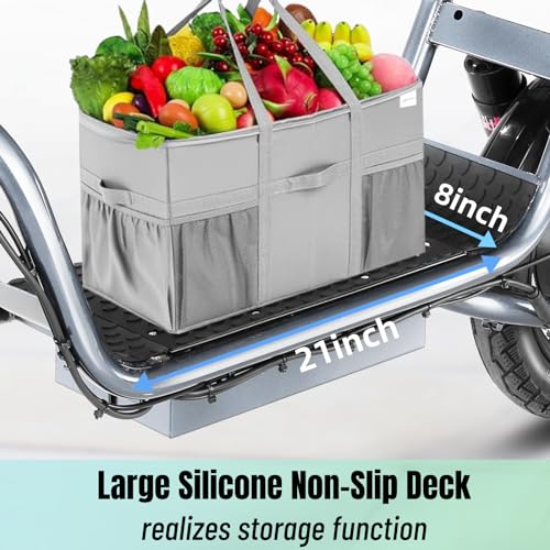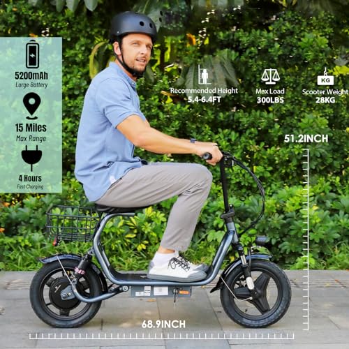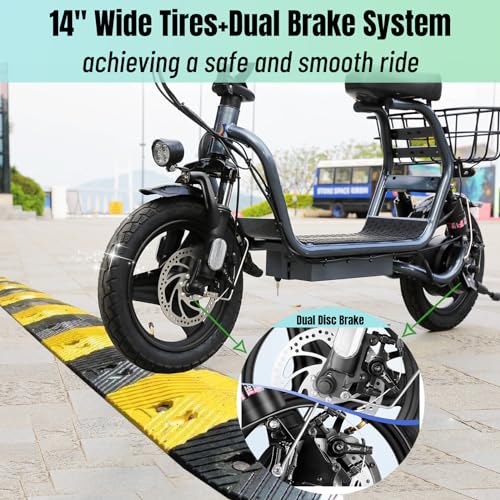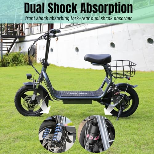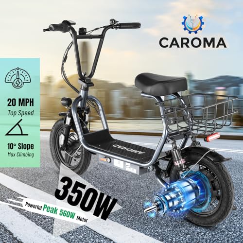SAFETY & COMFORT: The Caroma electric scooter includes bright front and rear lights and brake tail lights for night driving safety. The electrical safety system automatically cuts off power when braking. The super soft and wide shock-absorbing seat, along with a removable basket, ensures a safe and comfortable journey.