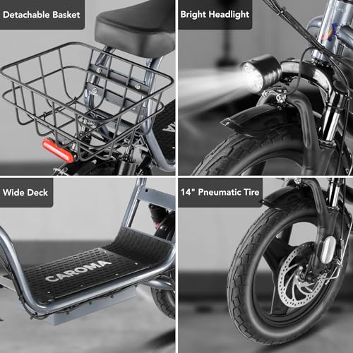 Mostly assembled with instructions, making setup simple. Our Caroma electric scooter meets UL2272 safety standards and comes with a warranty, ensuring you have a premium product with peace of mind.