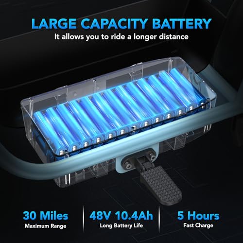The 48V 500Wh battery (UL 2272 certified) provides a 30-mile range with 4-6 hours of fast charging. Perfect for daily commutes and long leisure rides, this electric scooter ensures you reach your destination with ease.