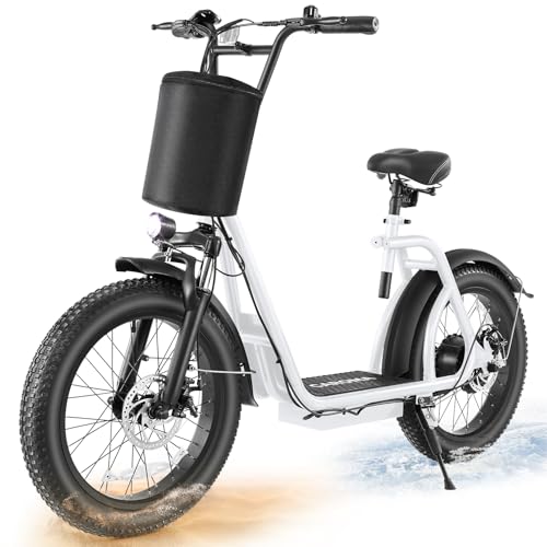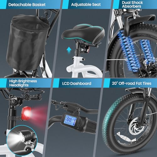 The electric scooter includes a front storage basket, making it easy to carry items while riding. It is also foldable and features a detachable, adjustable seat. This makes it easy to disassemble and assemble, and store when not in use.