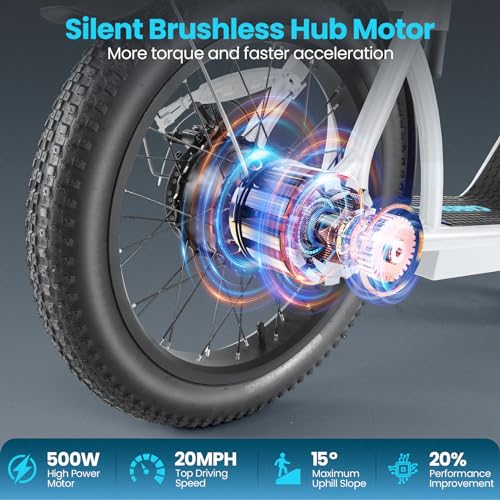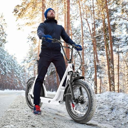 With a larger frame, large handlebars, and 20″x 3″ fat tires, our Caroma electric scooter fits people of various body types, suitable for heights between 4.5ft and 6.5ft. Additionally, it can carry up to 300lb, making it ideal for individuals of all sizes.