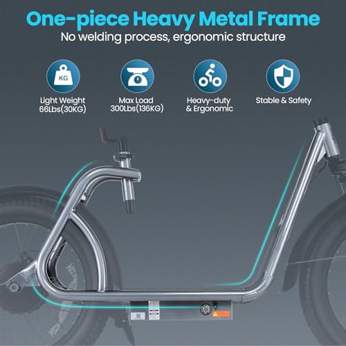Caroma electric scooters are designed for a wide range of users thanks to their larger frame, large handlebars, and 20″x 3″ fat tires. Suitable for users with heights between 4.5ft and 6.5ft and a weight capacity of up to 300lb, this electric scooter for adults offers a comfortable and secure ride.
