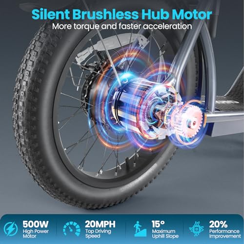 Powering your ride is a 48V/10.4Ah lithium battery and a peak 819W motor. These components ensure a top speed of 20mph and can handle inclines up to 30 degrees. With a range of 30 miles per full charge, this electric scooter is perfect for daily commuting, picnics, and shopping.