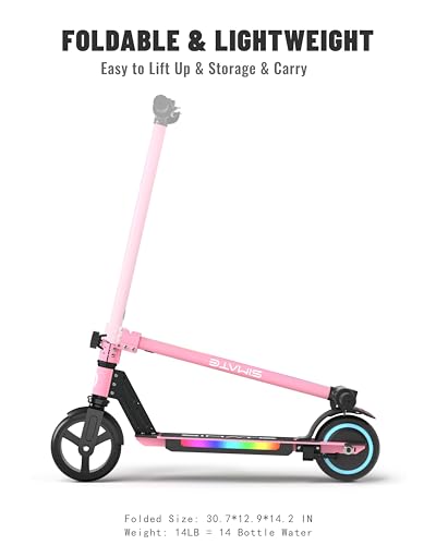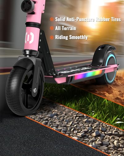Colorful Kids Motorized Scooter with LED Lights & Foldable Design, Top 8.7mph