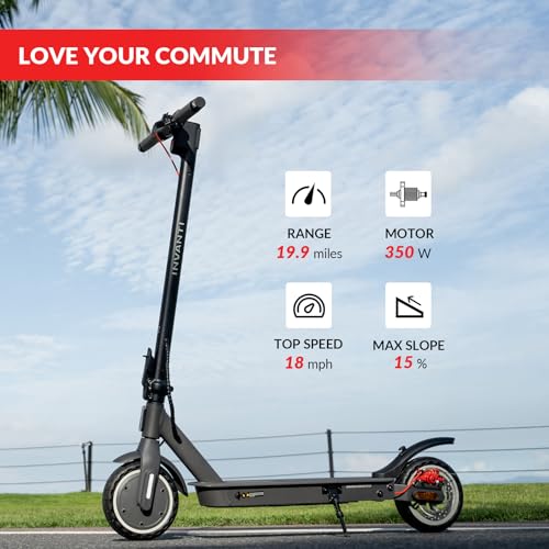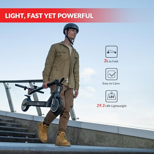 - Propelled by a 350w brushless motor (peak 700W), the scooter offers fast acceleration and a strong throttle, achieving a top speed of 18MPH. Weighing only 29.3 lbs, it’s easy to store in your trunk or take on public transportation.