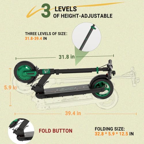 With 3 adjustable height settings, our electric scooter caters to users of different ages. The height can be upgraded to 31.8-39.4 inches, making it suitable for teenagers and adults over 14 years old, weighing less than 265 pounds.