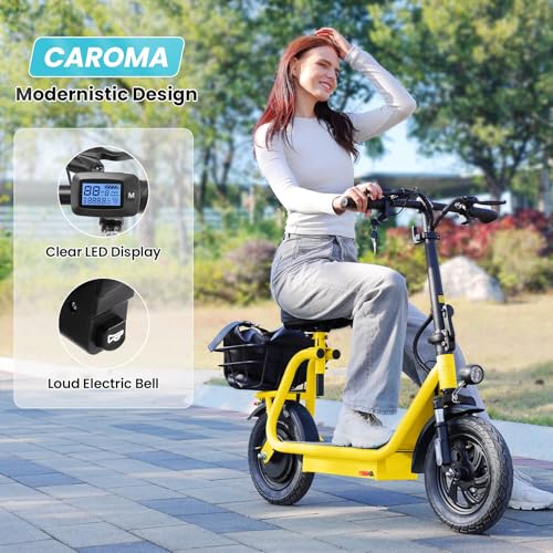 For easy storage and transport, the Caroma electric scooter has a foldable handlebar and detachable basket. The triangular high-carbon steel frame supports up to 265 pounds and provides maximum stability. A convenient handlebar hook adds extra storage space for your bags, ensuring a safer and smoother ride.
