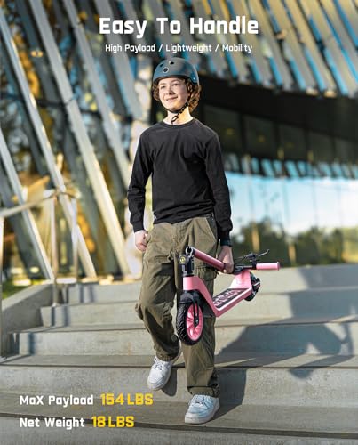 With 3 adjustable height settings, the T10 electric scooter fits kids between 4.3 to 5.6 feet tall, age 8 to 14, and weighing less than 154 pounds. Easily adjust the handlebar height without extra tools.