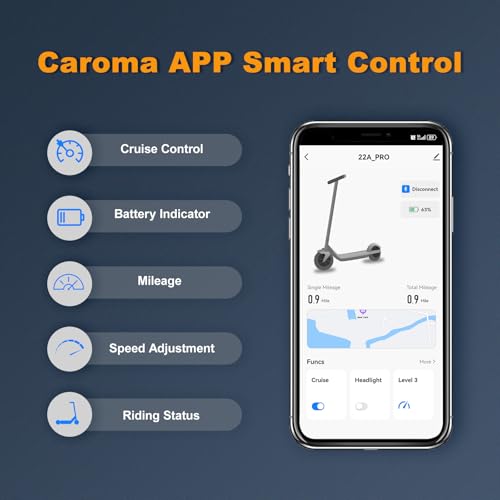 Enhance your ride with the E22 PRO’s smart features. Pair the adult electric scooter with the dedicated app on your phone to control cruise control, select speed levels (10MPH / 15.5MPH / 20MPH), manage the light system, and check battery life. This one-stop solution is perfect for your daily commute, offering convenience and advanced functionality.