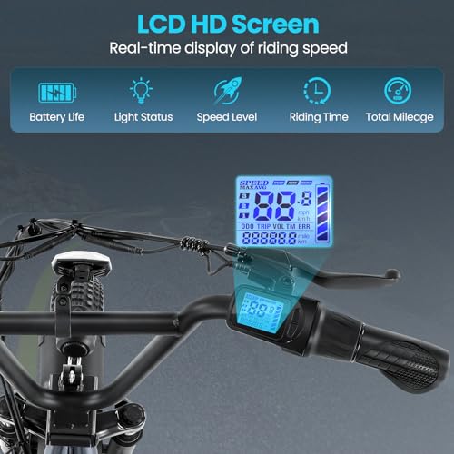 The high-quality front fork, seat shock spring, and puncture-proof tires provide excellent grip on various terrains. The front and rear mechanical disc brakes, combined with the E-ABS electronic braking system, ensure a safe and smooth ride, even on rough or extreme terrains.