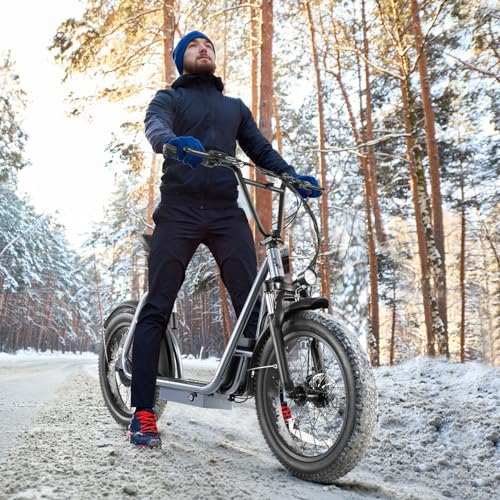 Compared to general electric scooters, the Caroma electric scooter is designed for a wider range of users. With a larger frame, large handlebars, and 20″x 3″ fat tires, it suits body types from 4.5ft to 6.5ft and can carry up to 300lbs. The large-size pedals ensure a comfortable and stable ride.