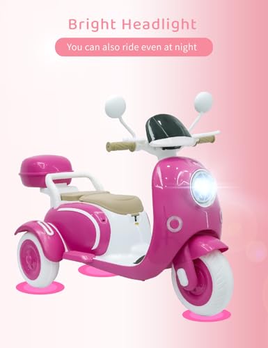 Girls' 12V Electric Motorcycle, 2 Seats with Storage, Stable 3-Wheel, Rose (Dual Motor)Girls’ 12V Electric Motorcycle, 2 Seats with Storage, Stable 3-Wheel, Rose (Dual Motor)