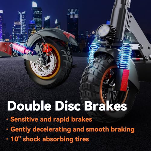 Designed for convenience, the M4 scooter comes with 10-inch off-road wheels that can handle hills up to 25 degrees. The scooter is equipped with disc brakes and electronic brakes for reliable stopping power. Additionally, the air-filled tires are puncture-resistant, ensuring consistent performance.