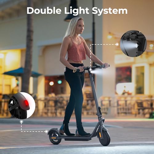 Featuring a rear electronic brake and a mechanical drum brake, the electric scooter ensures a smooth and controlled stop. Both front and rear have headlights and brake lights, enhancing visibility and safety, especially during nighttime rides.