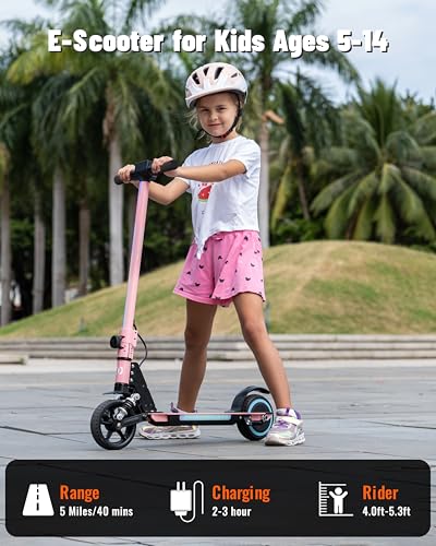 Perfect for riders aged 6-14, the SIMATE electric kids scooter is great for kids, girls, and boys. Ideal for riders between 4.0 ft and 5.3 ft tall, this scooter is perfect for experiencing the fun of riding.