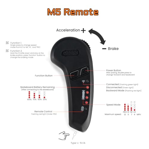 The Campus comes with a compact, 4-speed remote that makes speed switching easy. This is perfect for enhancing balance and riding skills for both teens and beginners. The ergonomic M5 remote offers intuitive and straightforward controls with a user-friendly interface.