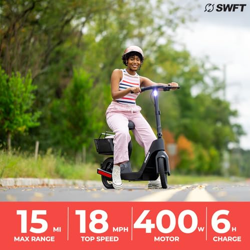 Powered by a robust 400W motor and equipped with 14″ durable performance tires, our electric scooter achieves speeds of up to 18 MPH. With a range of 15 miles on a full charge, your rides are swift and efficient.