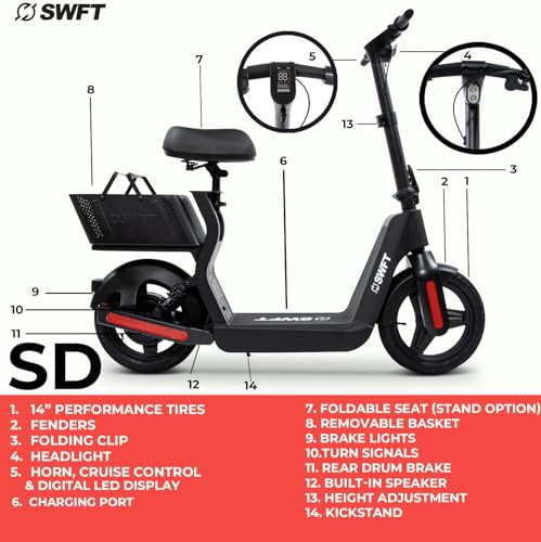 Our adult electric scooter comes with a spacious rear basket for convenient transport of essentials. Snap-on accessories provide added versatility, making every ride more practical and personalized.