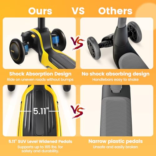 – Ideal for Ages 3-5: Helps young children learn balance and coordination. The 50mm widened front wheel with shock absorption ensures a smooth, stable ride on uneven surfaces.